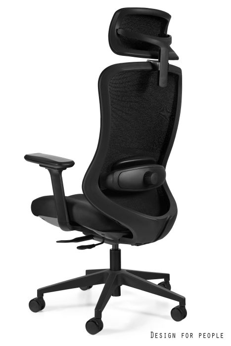 - Zagłówek i oparcie tapicerowane siatką