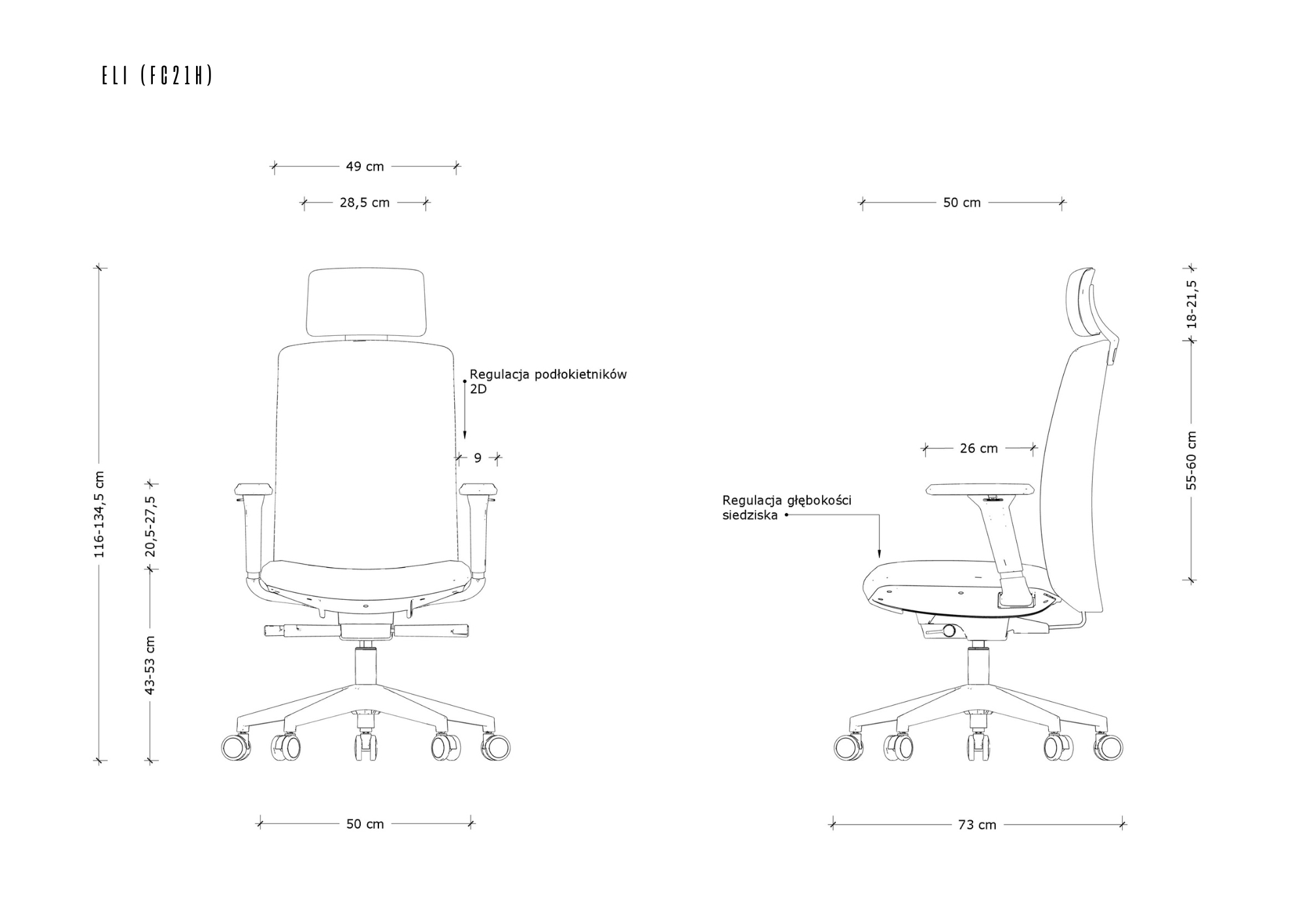 - Regulacja podłokietników 2D