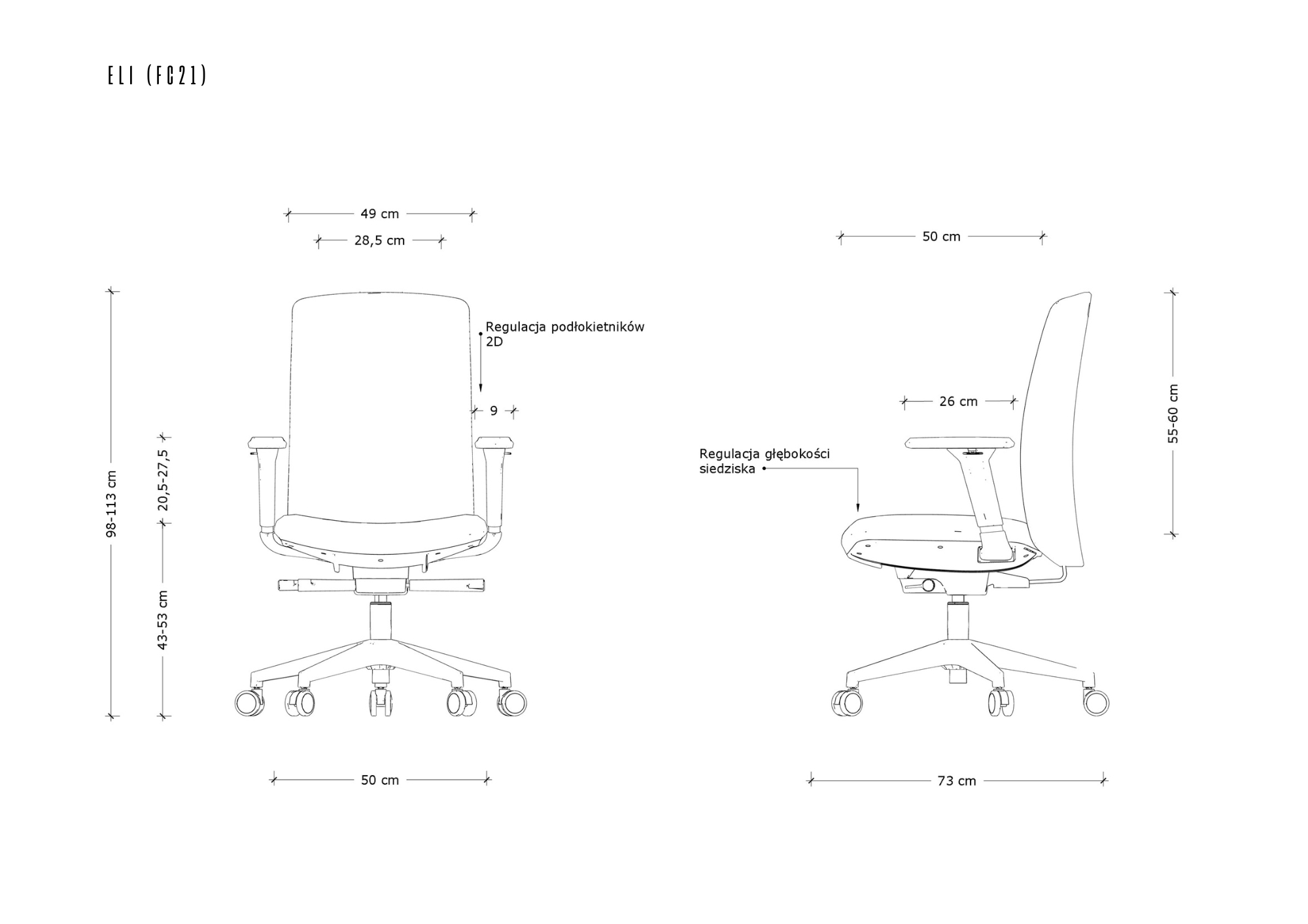 - Regulacja głębokości siedziska