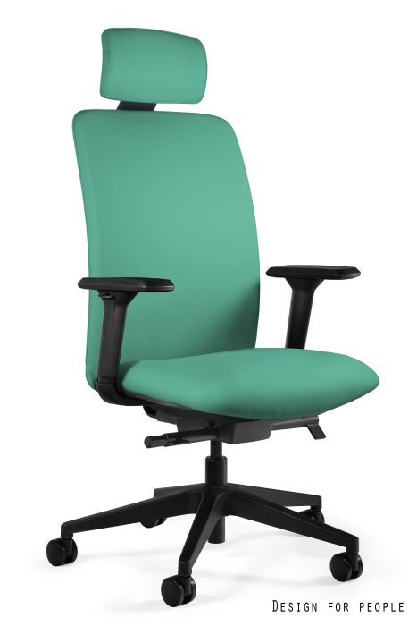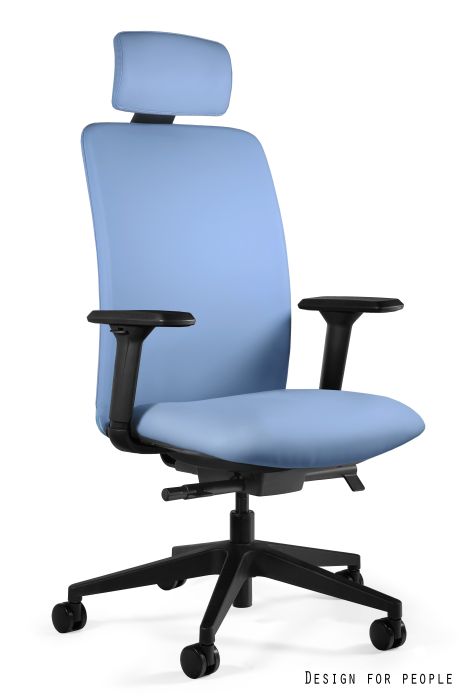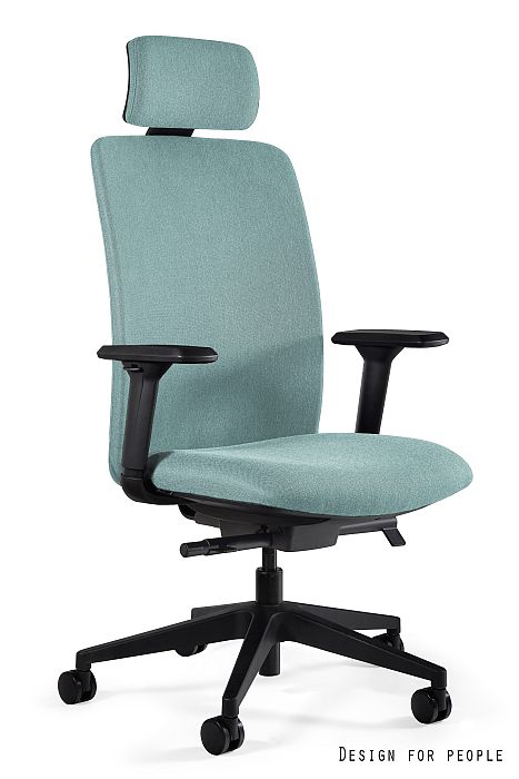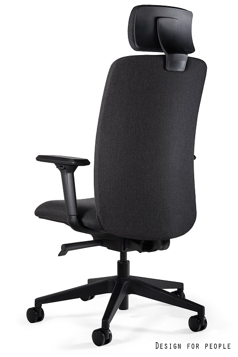 - Zagłówek, oparcie i siedzisko tapicerowane tkaniną lub eko-skórą